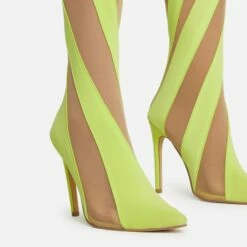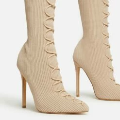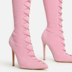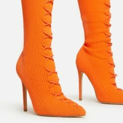 EGO Zeri Lace Up Pointed Toe Stiletto Heel Over The Knee Thigh High Boot In Orange Ribbed Knit