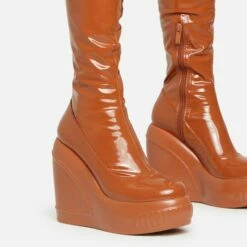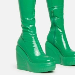 EGO Fired-Up Pointed Toe Wedge Heel Over The Knee Thigh High Sock Boot In Snake Print Faux Leather