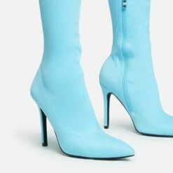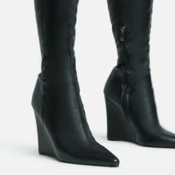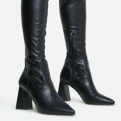 EGO Roux Pointed Toe Stiletto Heel Over The Knee Thigh High Long Slouch Boot In Black Faux Suede