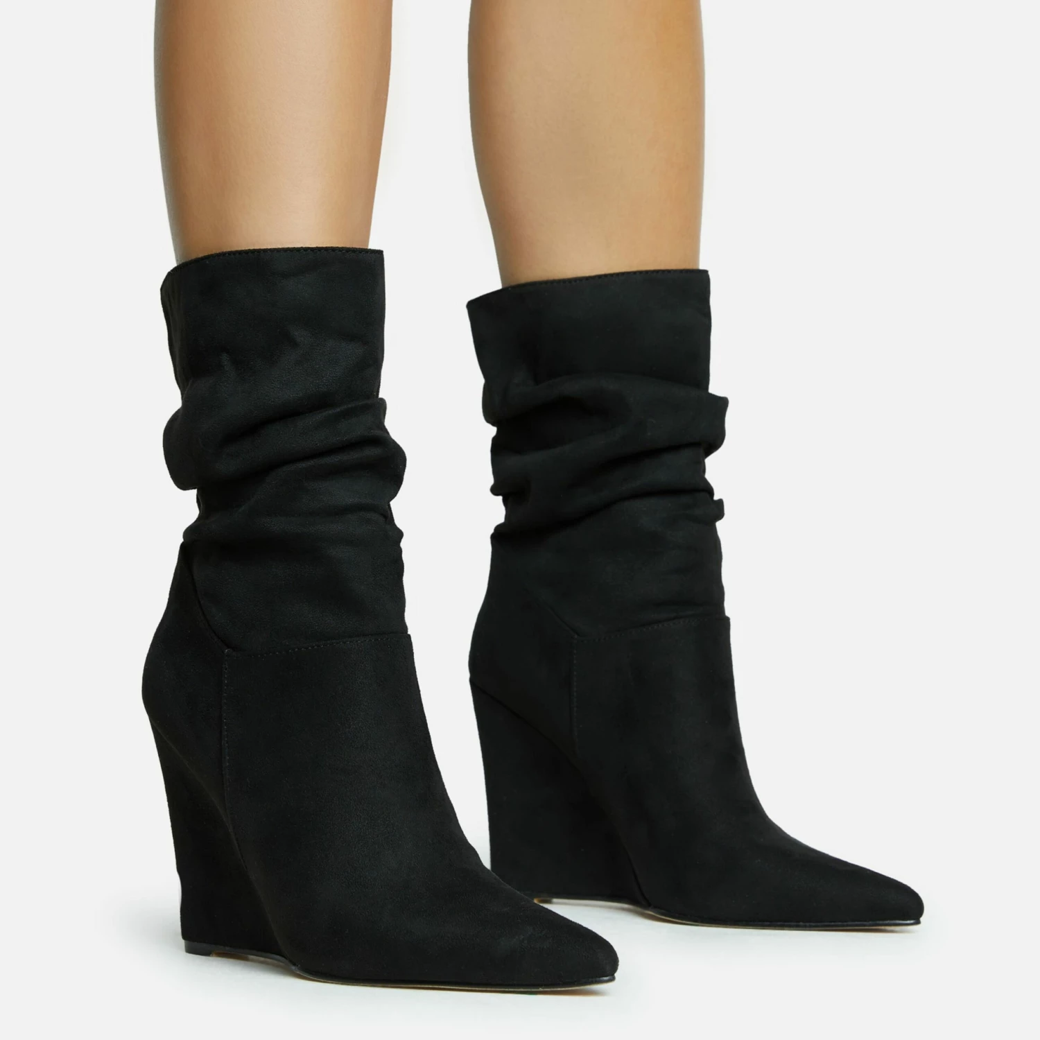 Every doll needs a pair of black boots and we’re obsessed with these. Featuring a black faux suede material, a slouched design, an ankle length and a pointed toe.