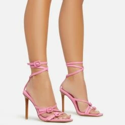 Make a statement with these heels doll. Featuring a pink faux leather material, a double buckle strap detail, a square toe and a stiletto heel.