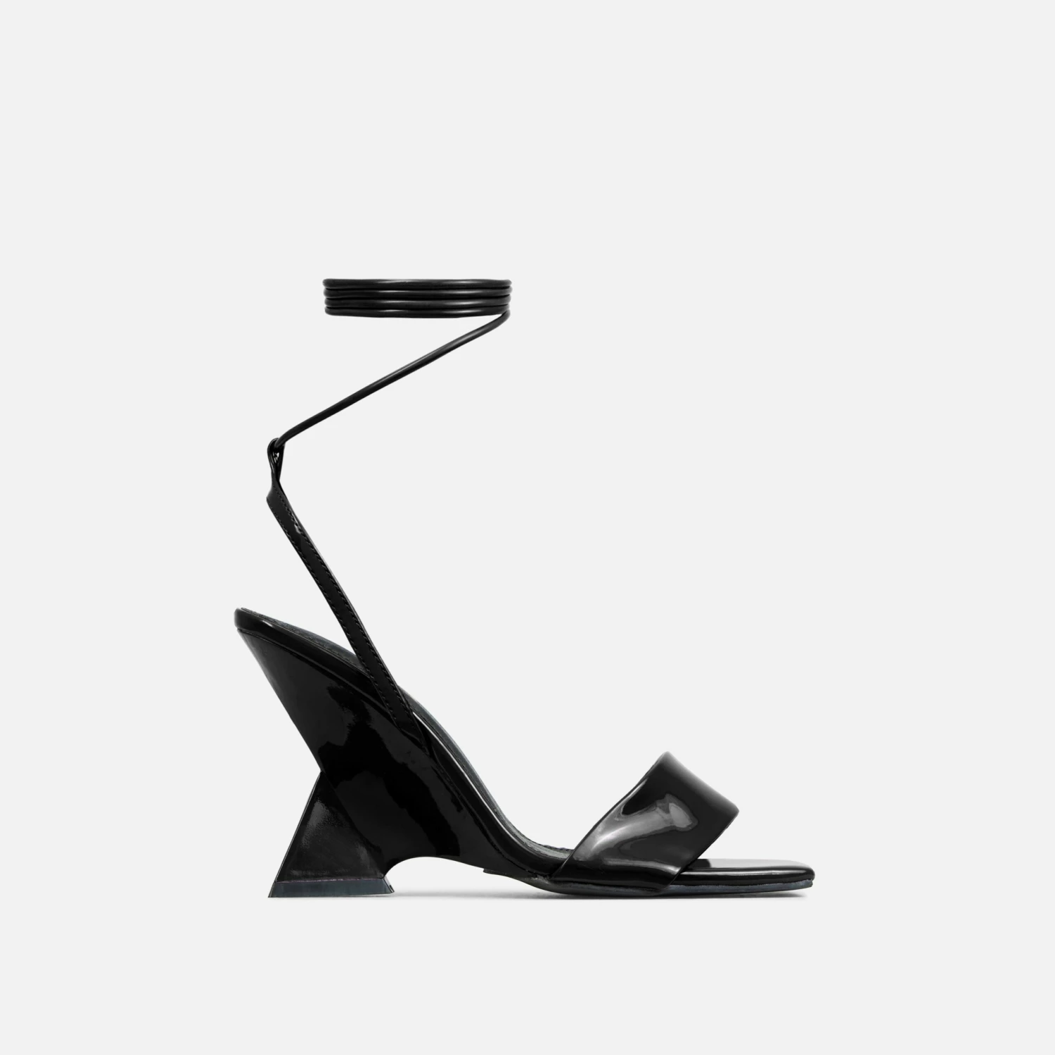 Hit refresh on your classic look doll. Featuring a black patent material, with a square toe, a cut out wedge heel and a lace up finish.