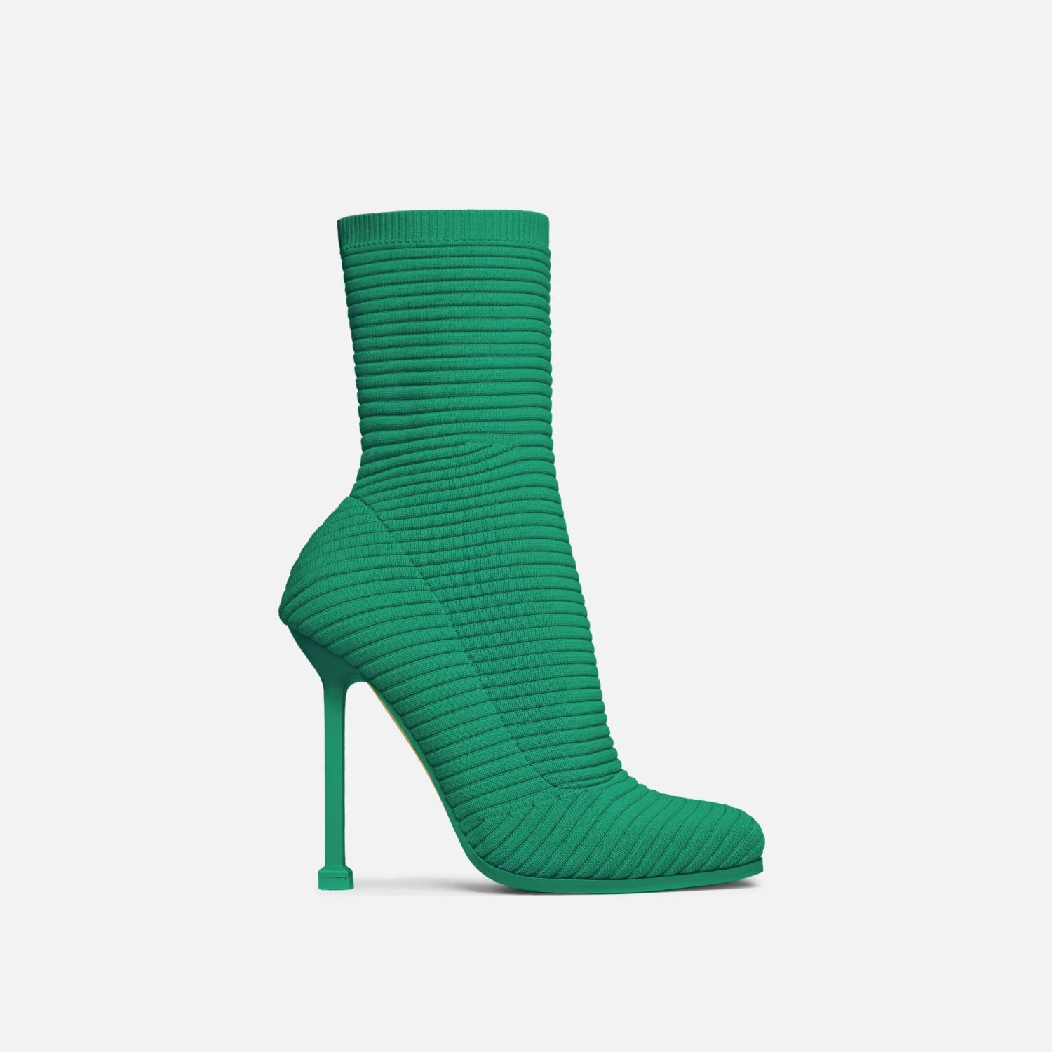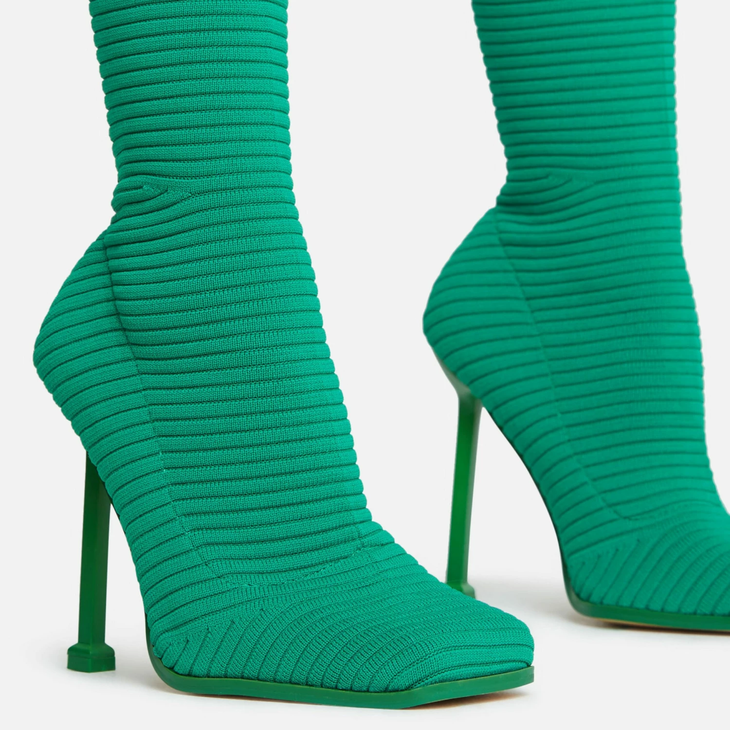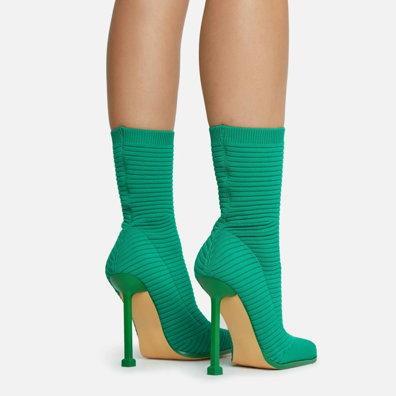 Make a bold statement in these gorg boots doll. Featuring a green ribbed knit material, with a square toe, stiletto heel and an ankle sock boot design.