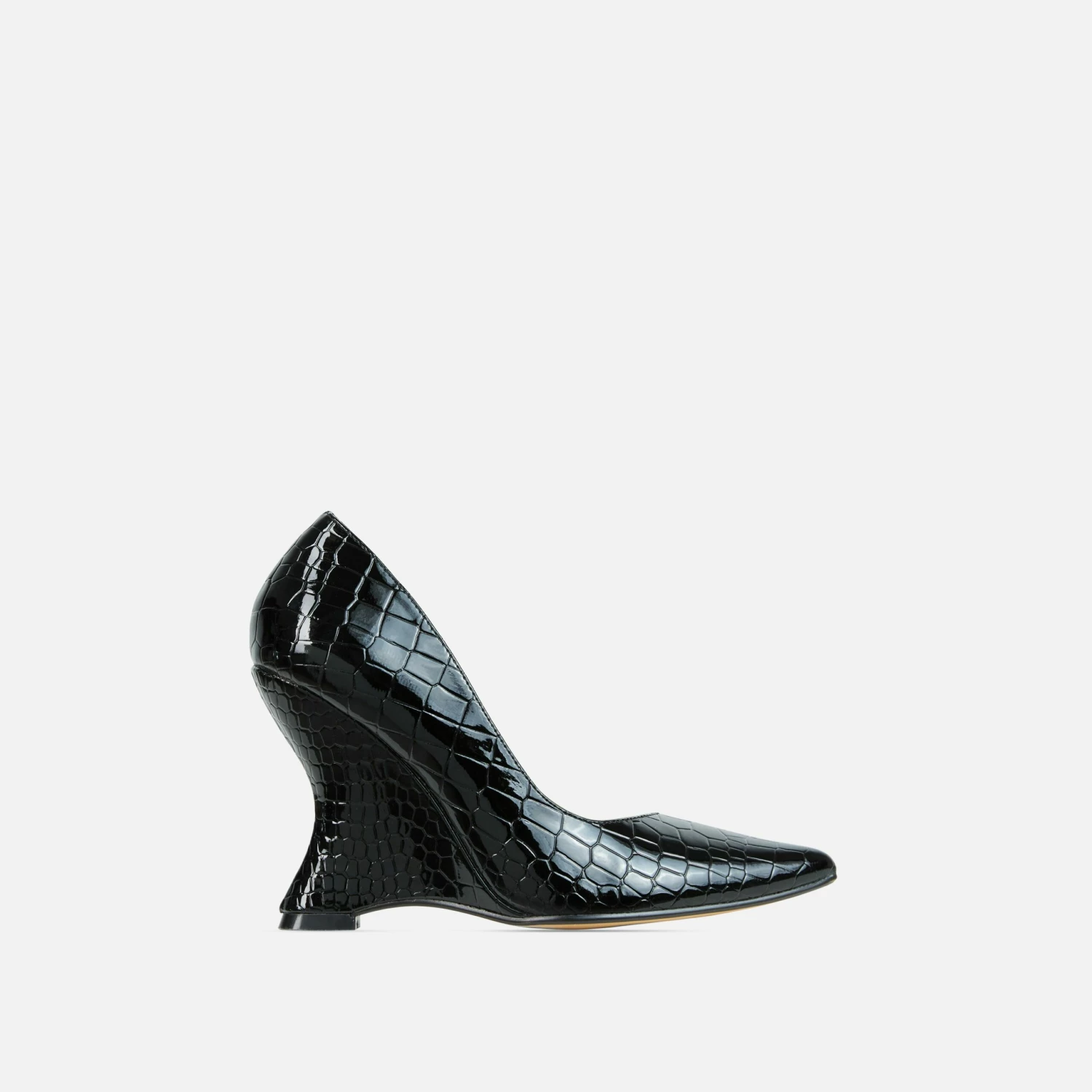 EGO In-Your-Soul Pointed Toe Cut Out Wedge Court Heel In Black Croc Print Faux Leather