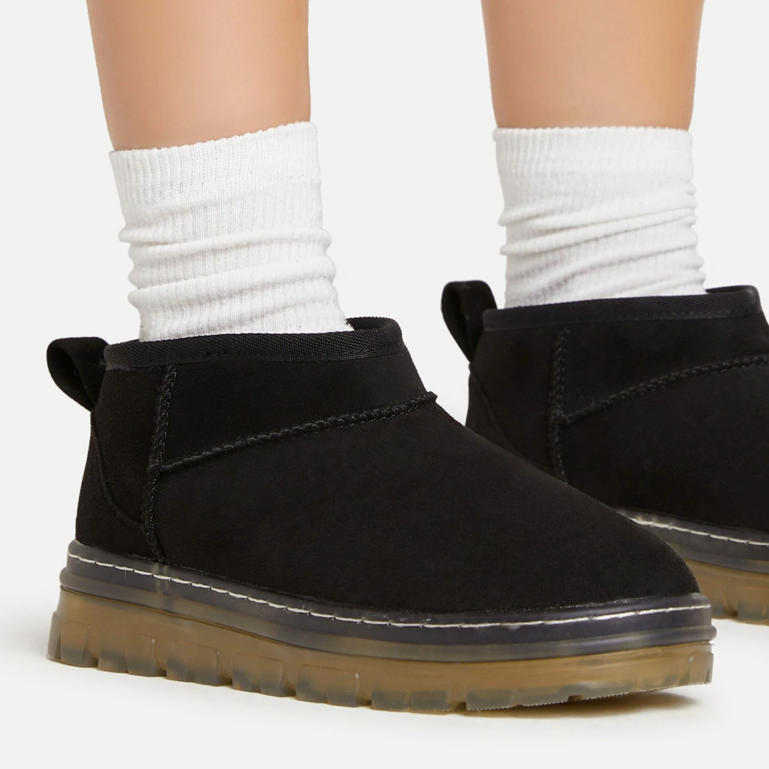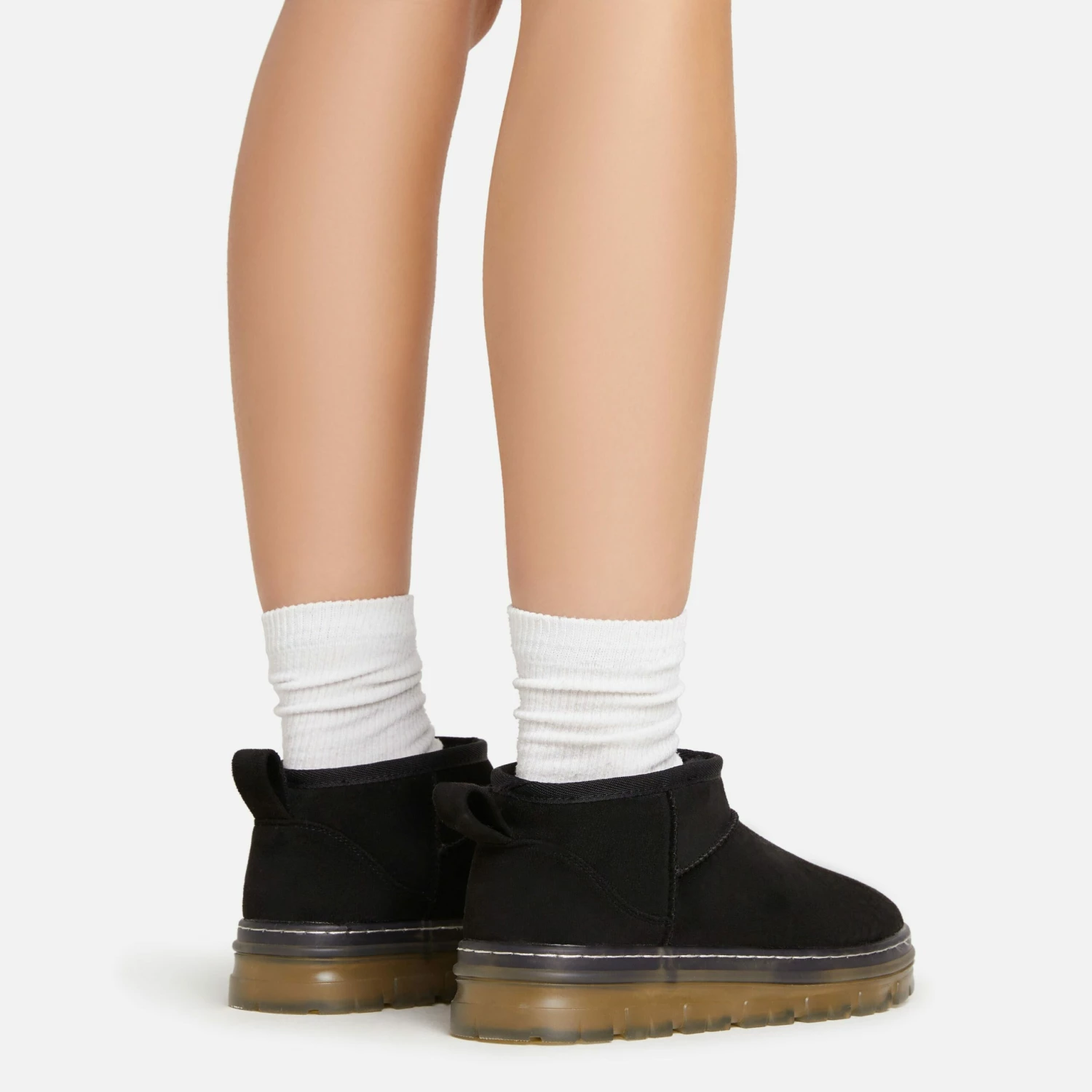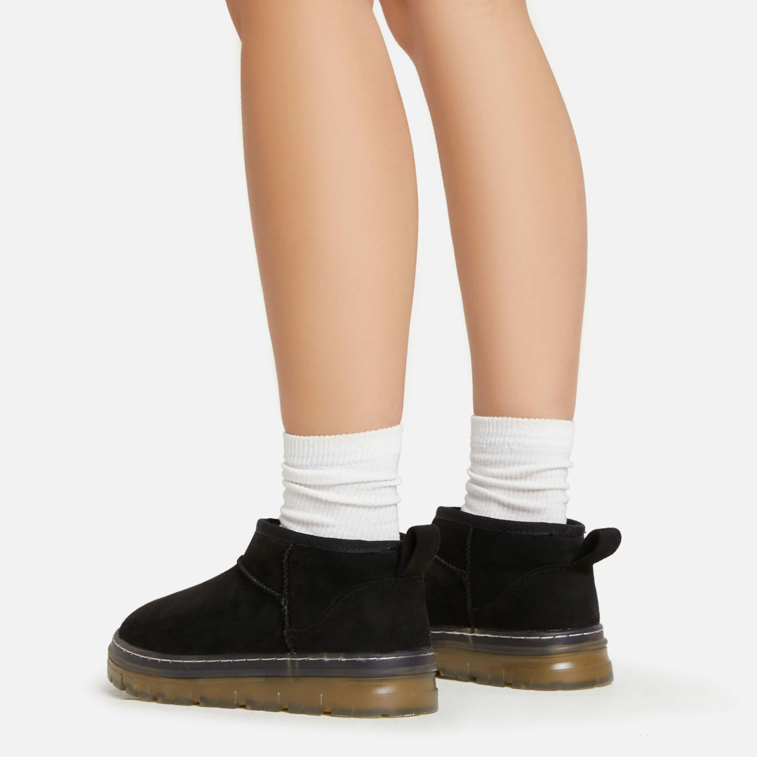 Keep on trend with these boots doll. Featuring a black faux suede material, faux fur lining, a rubber sole and an ankle length.