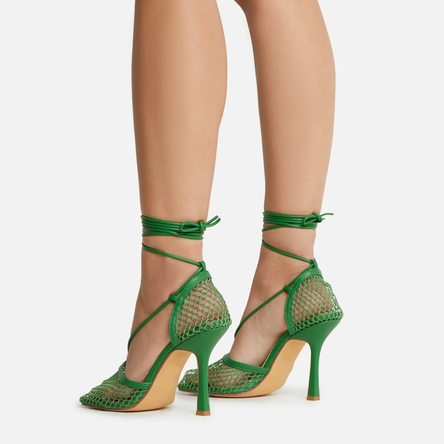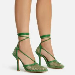 Step up your game in New-Me fishnet lace up heels in green. Team these with a white dress and mini bag to make a fashion statement. We’re obsessed, are you?!