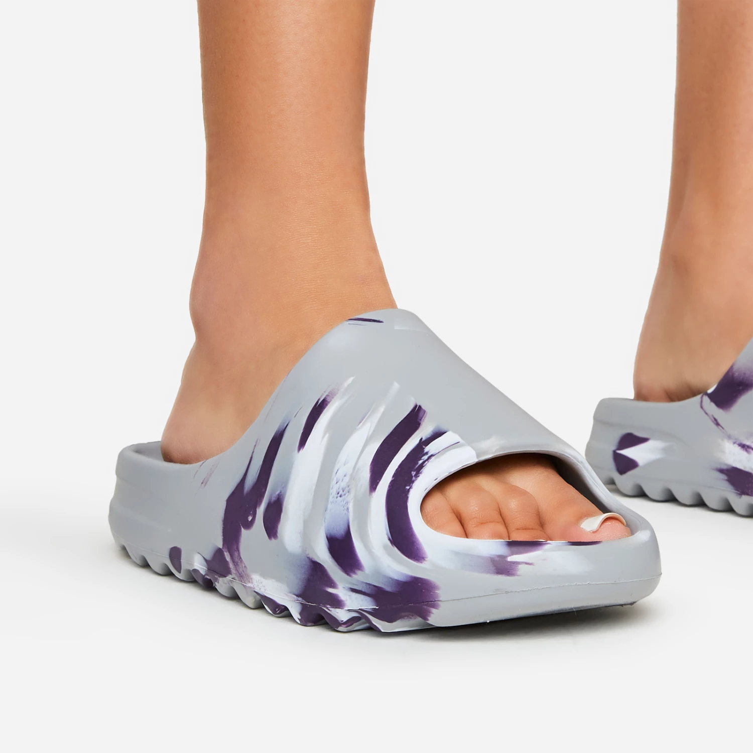 Update your casual wardrobe with these new arrivals doll. Featuring a grey rubber material, with paint stroke effect detailing and a slip on design.