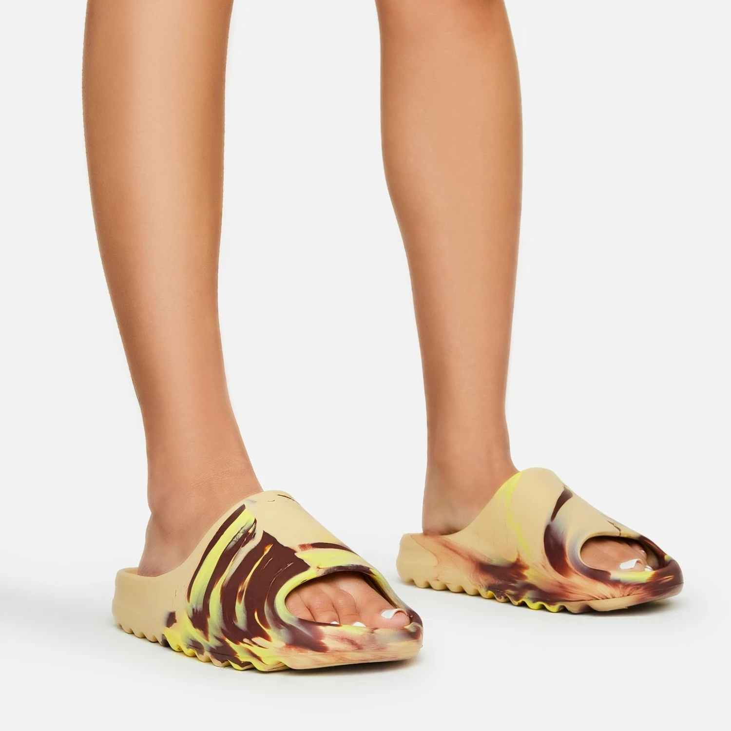 Amp up your off-duty look with these new arrivals. Featuring a nude rubber material, with paint stroke effect detailing and a slip on slider design.