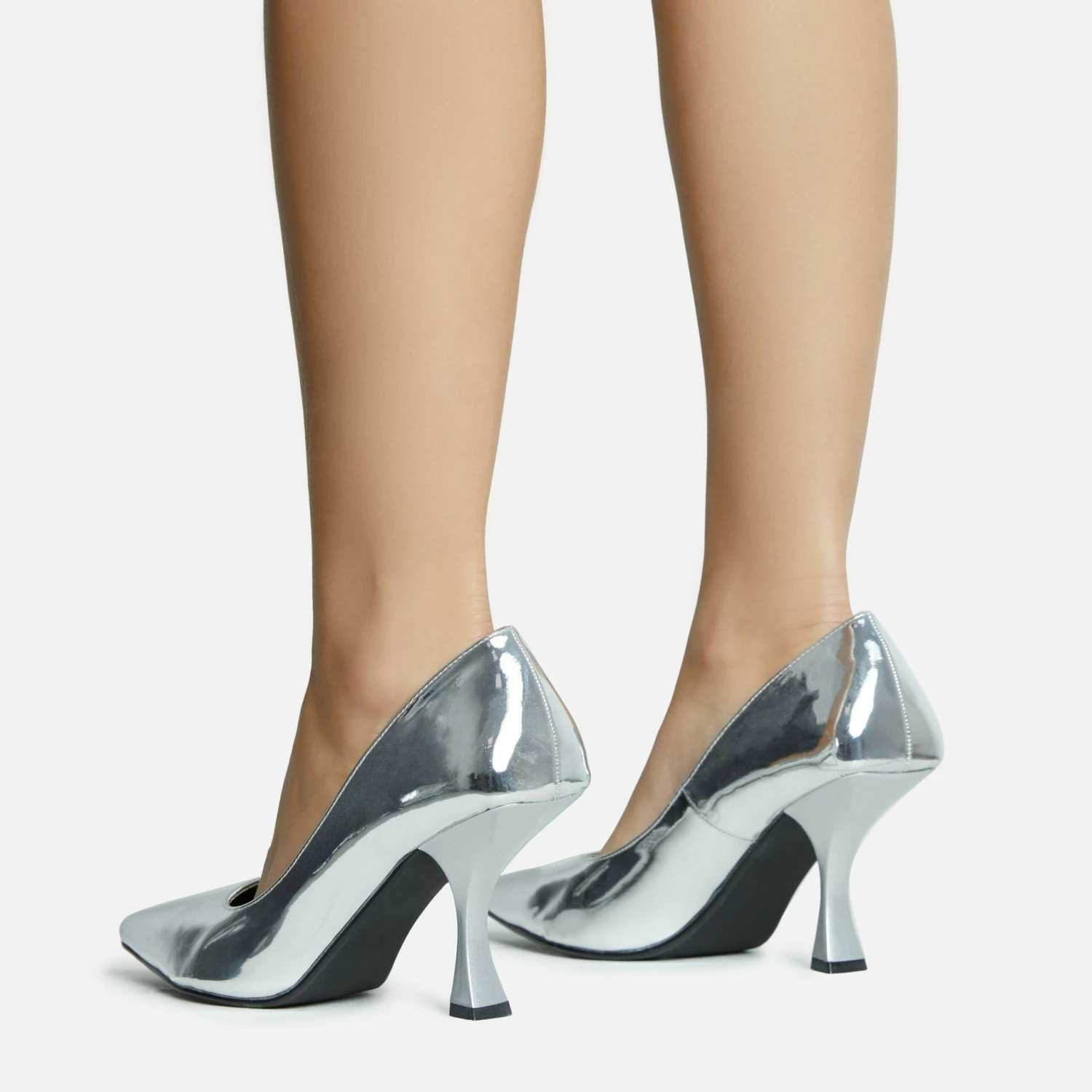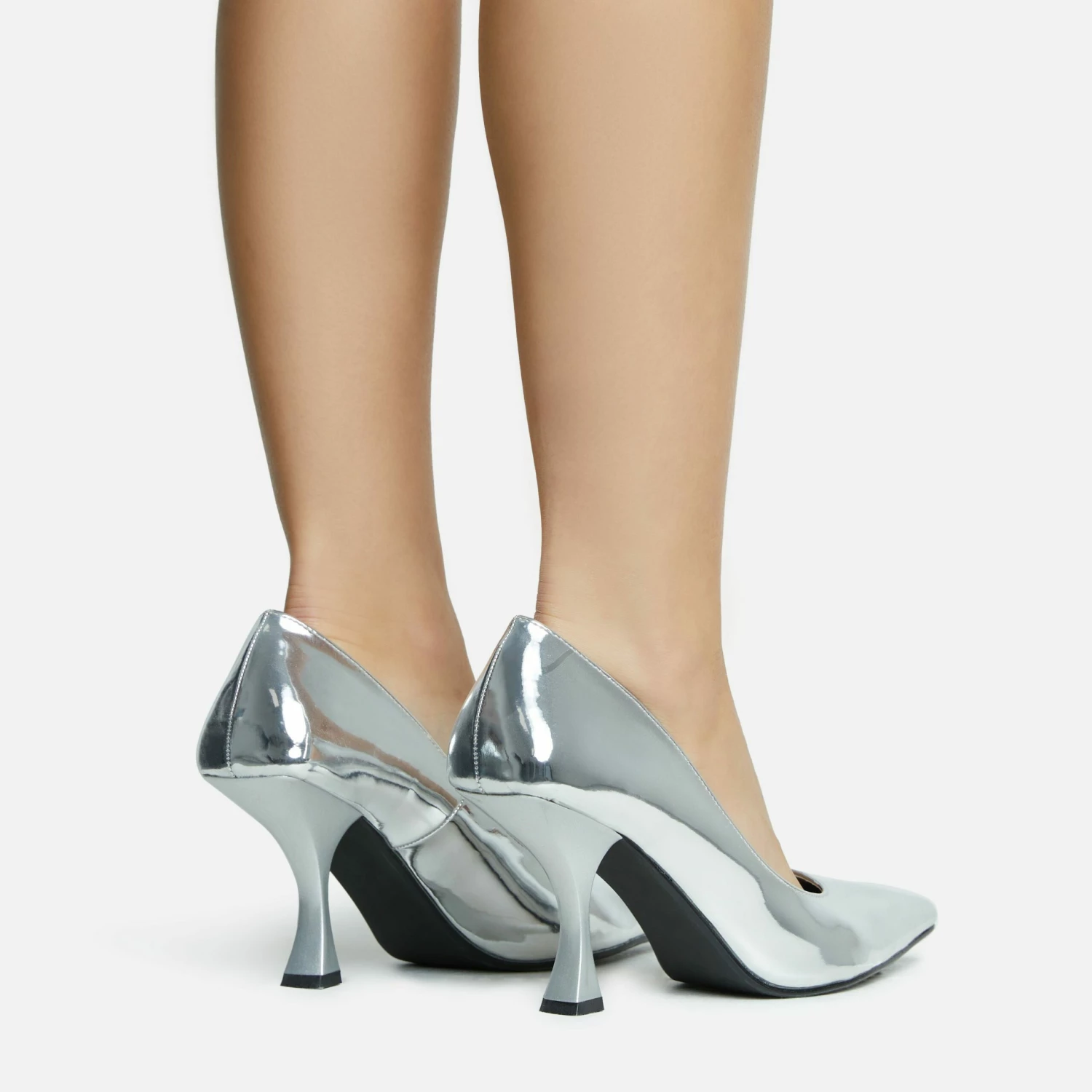 Stand out from the crowd with these statement heels doll. Featuring a silver patent material, with a pointed toe a kitten heel and a court shoe design.