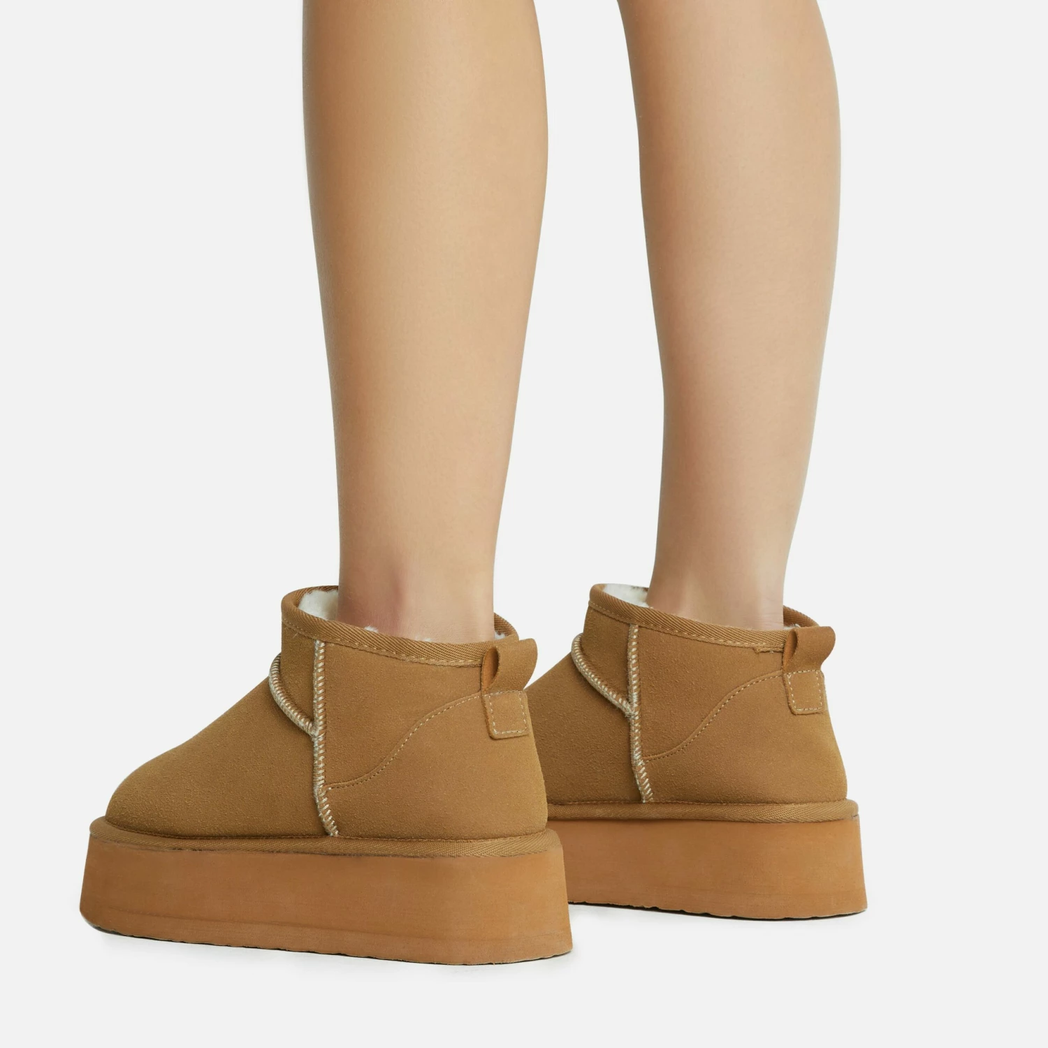 We are obsessing over our brand new A/W stock. Featuring a chestnut faux suede material, with faux fur lining, a platform sole and an ultra mini length.