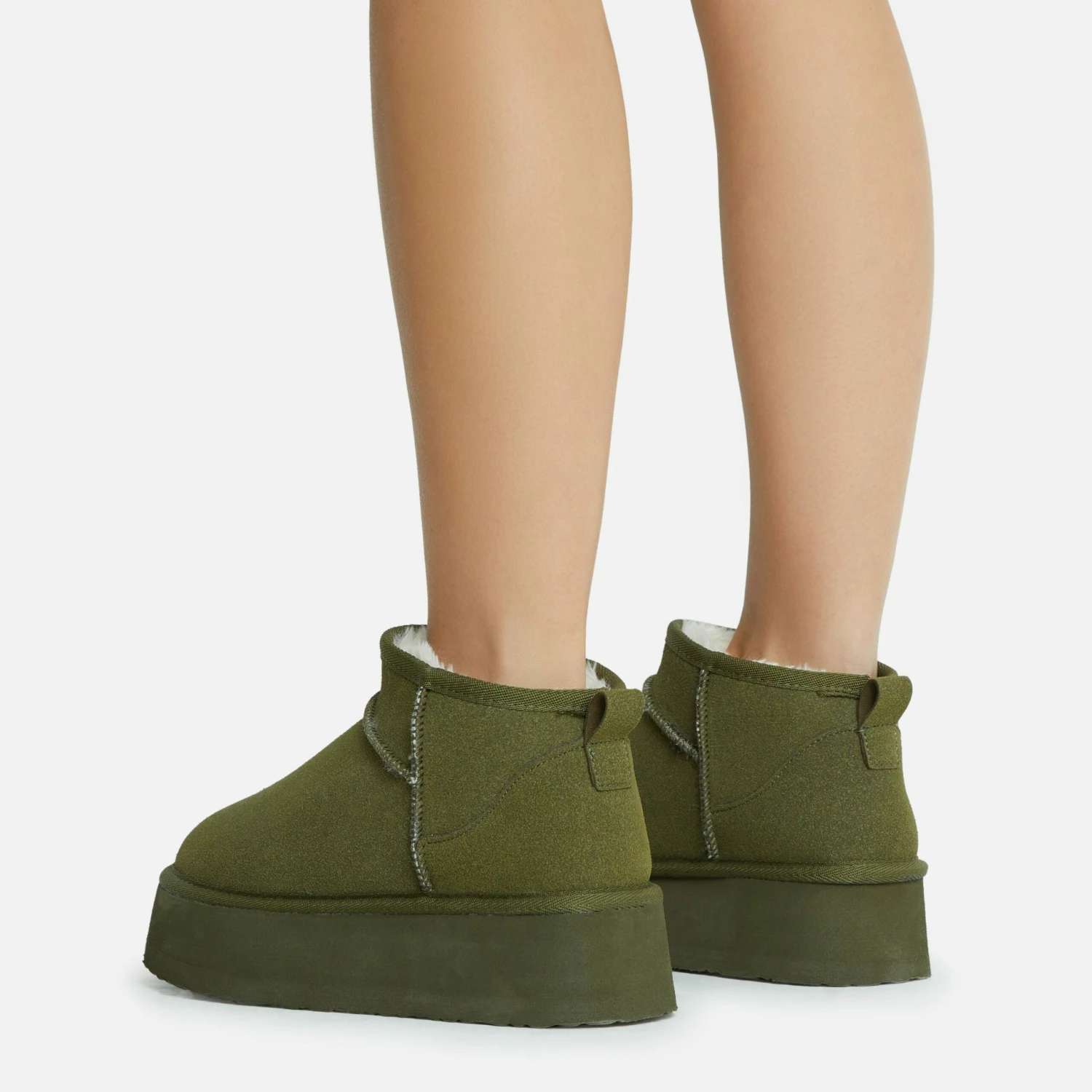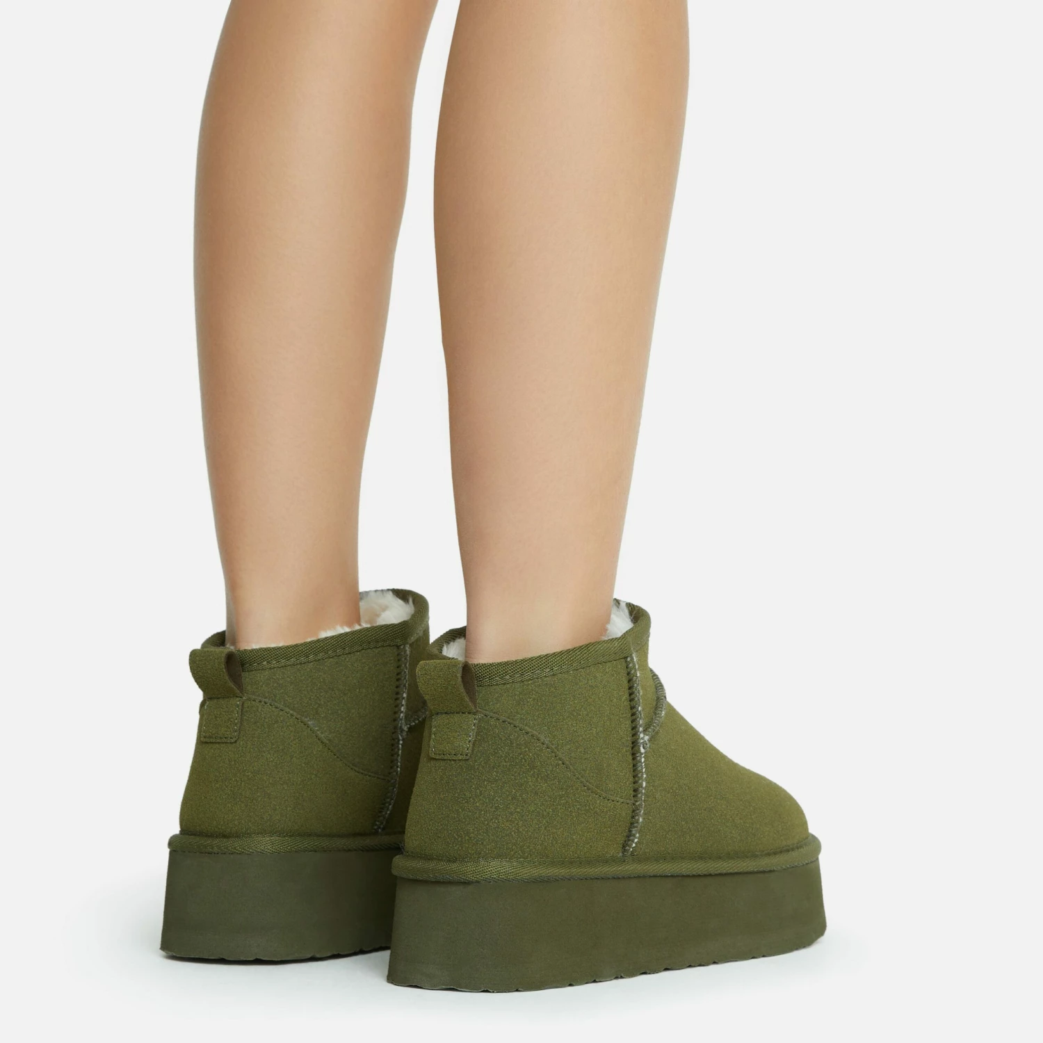 Get that ultimate blogger-worthy look with these new season boots doll. Featuring a khaki faux suede material, with faux fur lining, a platform sole and an ultra mini length.
