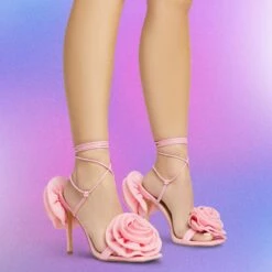 Add a pop of colour to your date night look. Featuring a pink faux leather material, with 3D rose detailing, a square toe, stiletto heel and a lace up finish.