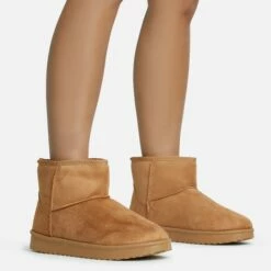 Get that new season look everyone wants doll. Featuring chestnut brown faux suede material, with faux fur lining and an ankle length.