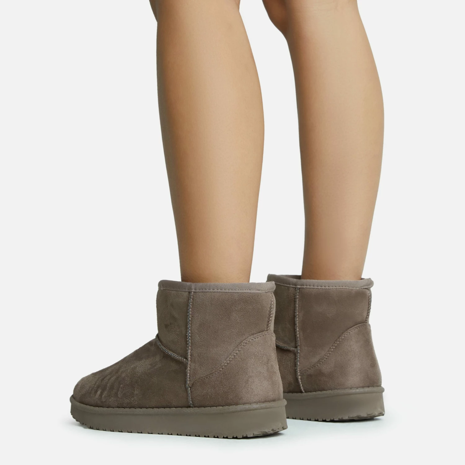 Get that blogger-worthy look everyone wants with these new season boots. Featuring a taupe brown faux suede material, with faux fur lining and an ankle length.