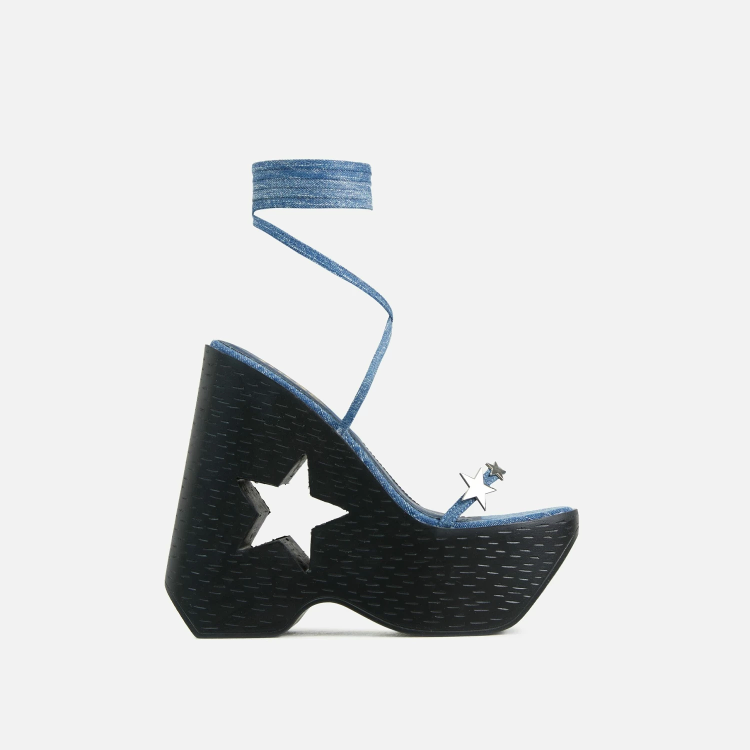 EGO Tour Lace Up Knotted Strap Cage Detail Square Toe Thin Stiletto Heel In Lilac Faux Leather