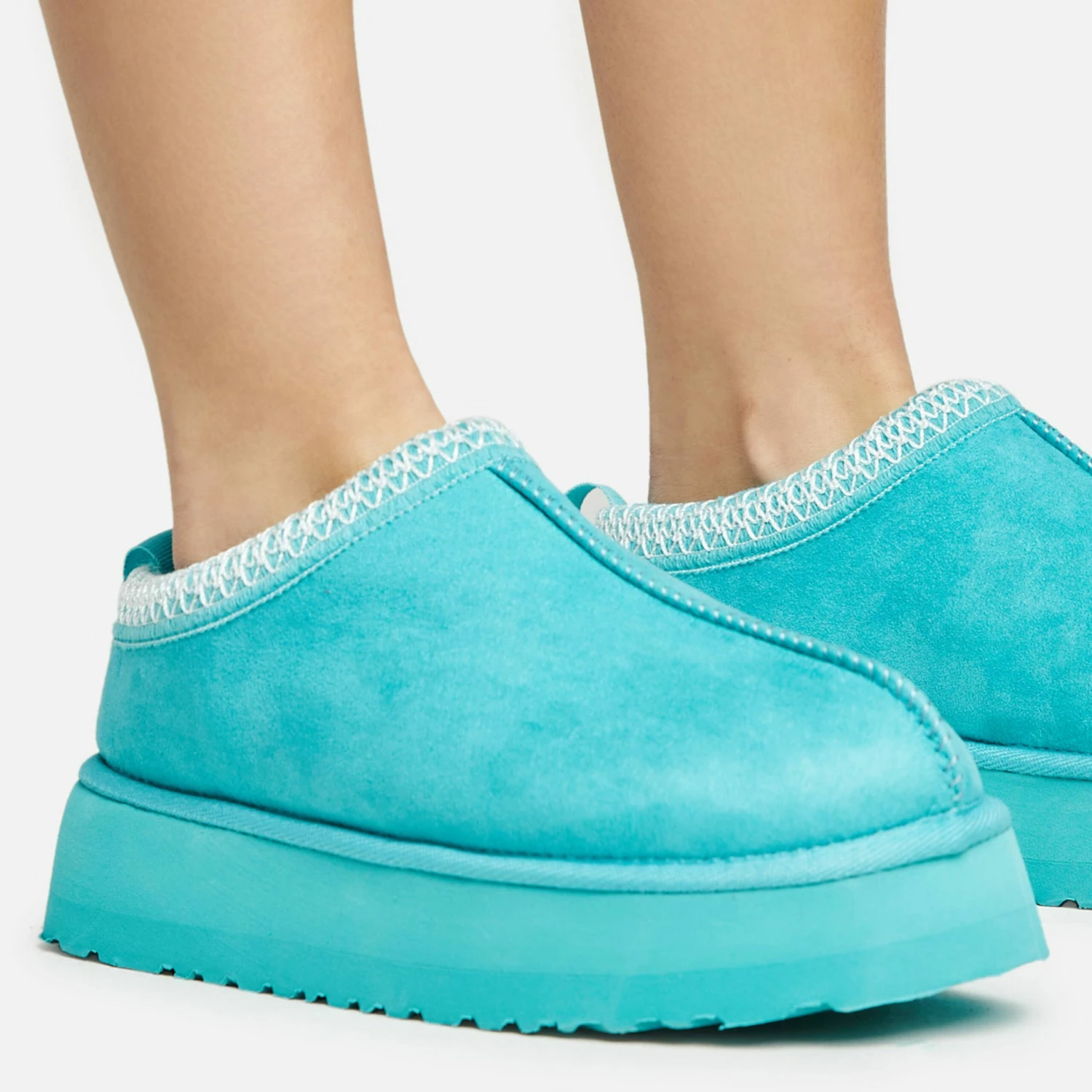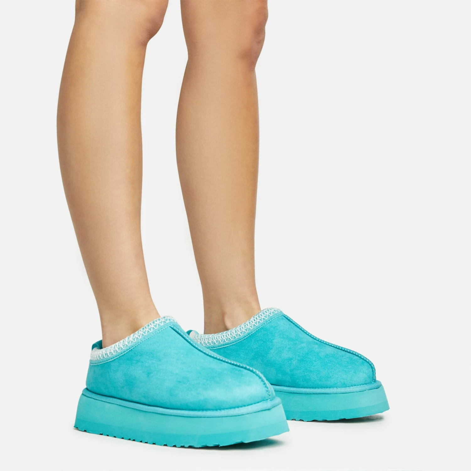 Amp up your off duty look with these blogger worthy slipper. Featuring a blue faux suede material, with aztec detailing, faux fur lining, a platform sole and a slip on slipper design.