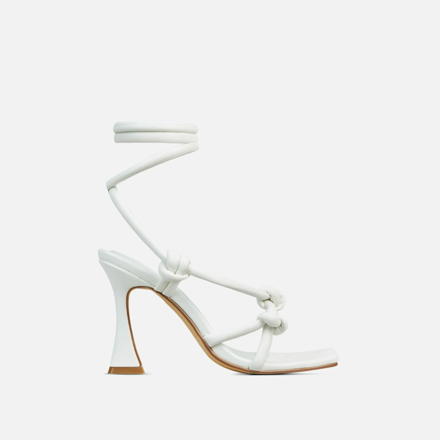 EGO Tour Lace Up Knotted Strap Cage Detail Square Toe Thin Stiletto Heel In Lilac Faux Leather