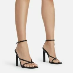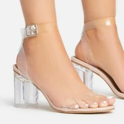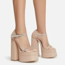 EGO Peggie Diamante Strap Open Square Toe Extreme Platform Block Heel In Nude Faux Leather