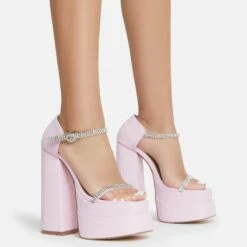 EGO Peggie Diamante Strap Open Square Toe Extreme Platform Block Heel In Pink Faux Leather