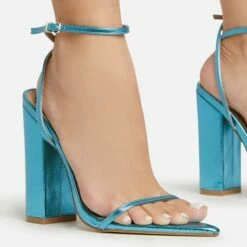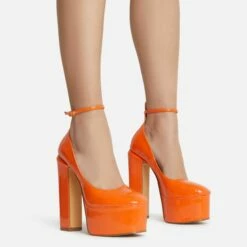 EGO Show-Ahead Clear Perspex Strap Diamante Detail Platform Flared Block Heel In Black Faux Leather