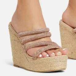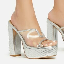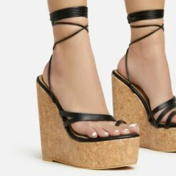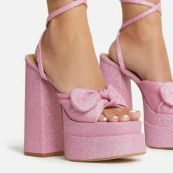EGO Bubblegum Lace Up Knotted Strap Detail Platform Wedge Heel In Silver Metallic Faux Leather