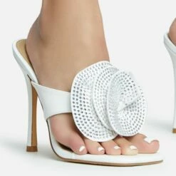 EGO Cadence Strappy Square Toe Metallic Lighting Bolt Statement Heel In Black Faux Leather