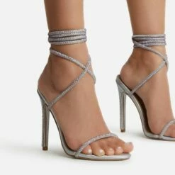 EGO Candy-Love Diamante Bow Perspex Pointed Toe Platform Flared Block Heel In Pink Faux Leather